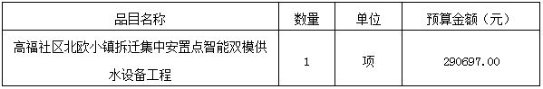 1、項目名稱:高福社區(qū)北歐小鎮(zhèn)拆遷集中安置點智能雙模供水設備工程