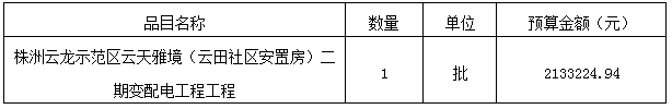 項目名稱:株洲云龍示范區(qū)云天雅境(云田社區(qū)安置房)二期變配電工程工程