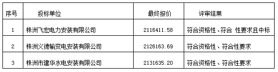株洲云龍示范區(qū)云天雅境(云田社區(qū)安置房)二期變配電工程于 2020年6月30日結(jié)束,現(xiàn)將成交結(jié)果公告如下: